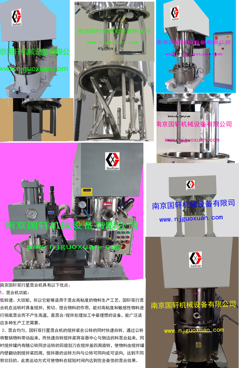 國軒機械設備有限公司位于素有六朝古都之稱:〖江蘇省省會城市南京〗公司專業從事工業攪拌機,行星分散機,雙行星混合機,三軸攪拌機,在線式混合機等設備的研發、生產、銷售為一體,產品定位于中高端,產品應用于:電池、高分子材料、焊錫膏、醫藥、化妝品、化工、膠粘劑、食品。顏料、染料和塑料等行業。公司擁有一批專業從事攪拌設備多年的優秀團隊。用現代企業的管理理念,致力于精細化管理和零缺陷作業的模式,立足于產品的質量管理......